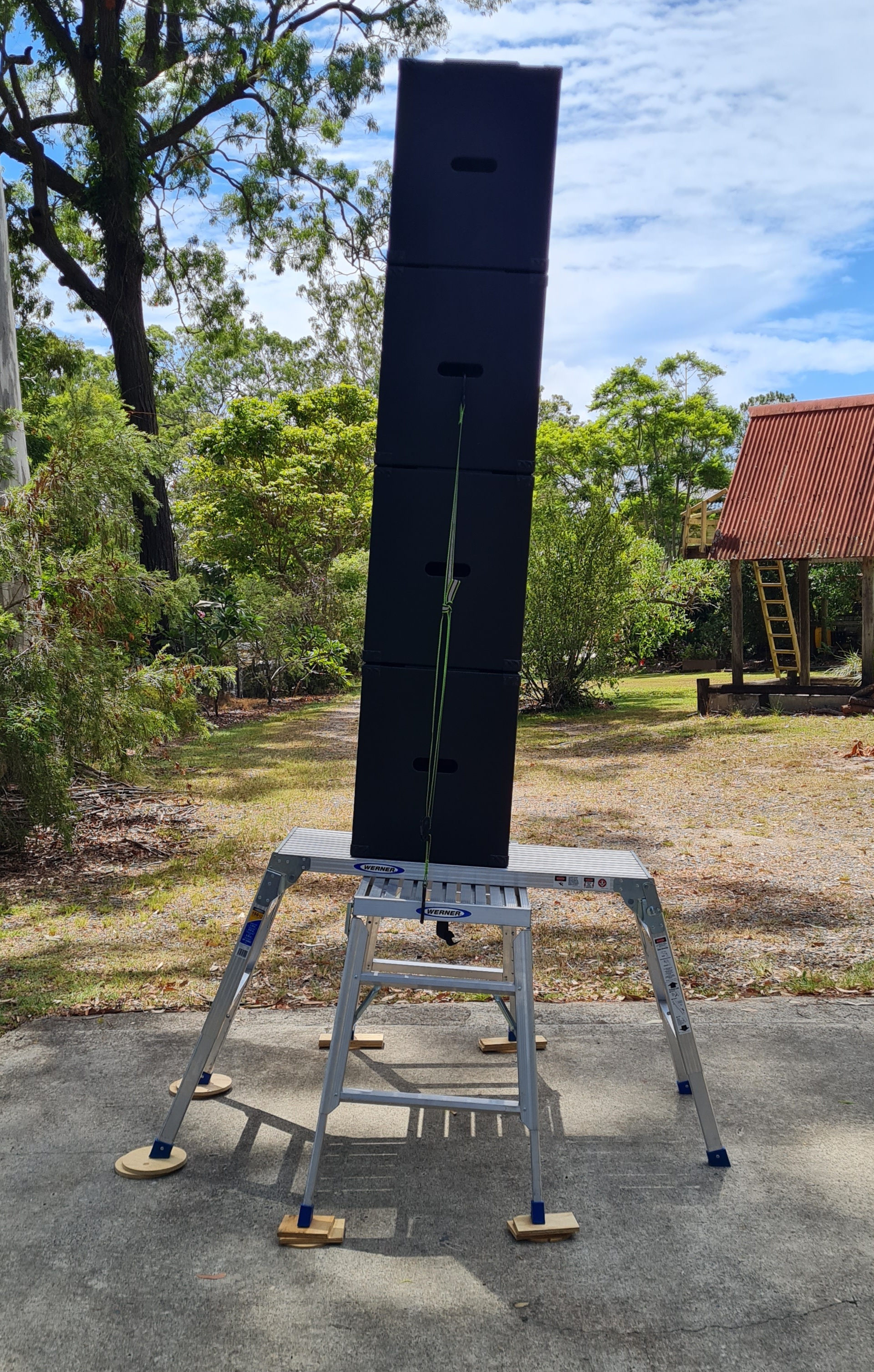 Cool idea with the ladders, Keryn. How many people and how big is the listening area? Specifically, how wide and deep will your crowd be? And will you be running stereo or mono content?