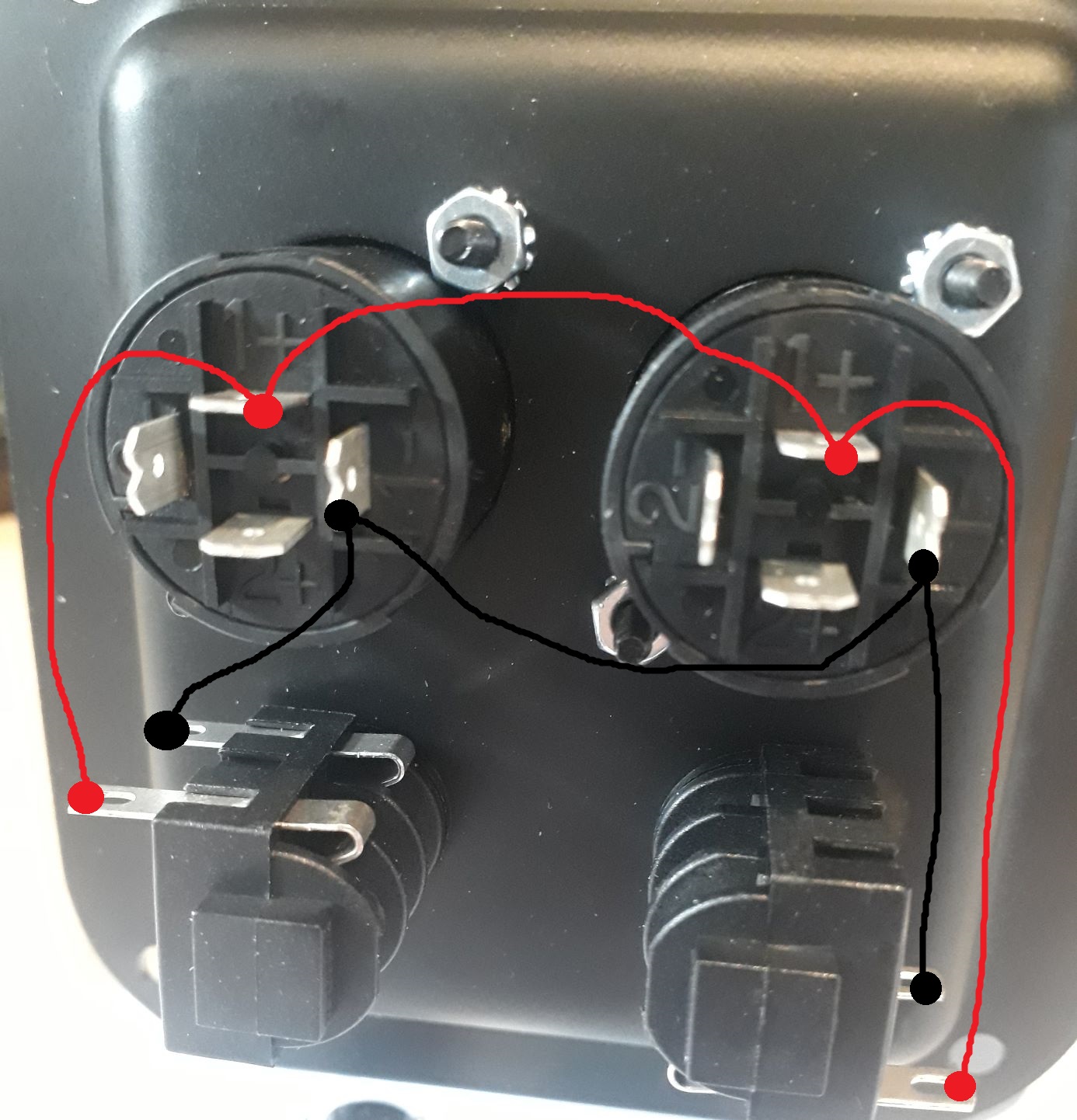 b. Then, and this is the part that I'm not 100% on. Left Each Neutrik is paralled down +1 to Tip and -1 to -1 for the sleeve. On the T/S, which terminal is which?? I can't see any marks.