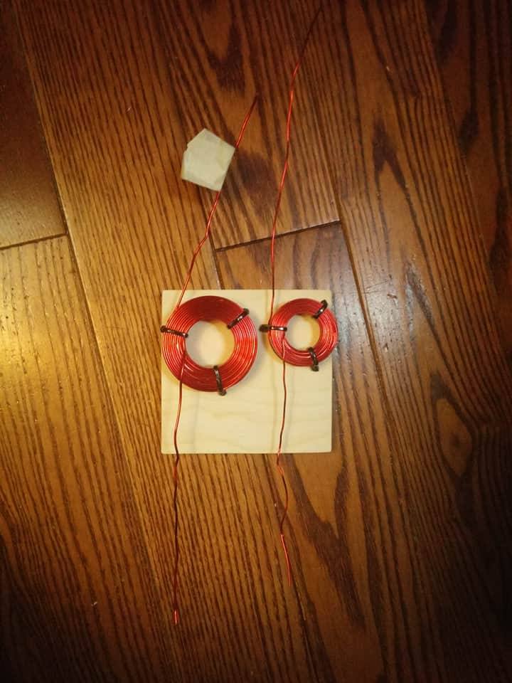 Also, stand the smaller inductor upright, and place it 90 degrees perpendicular to the larger coil if it has to be that close.