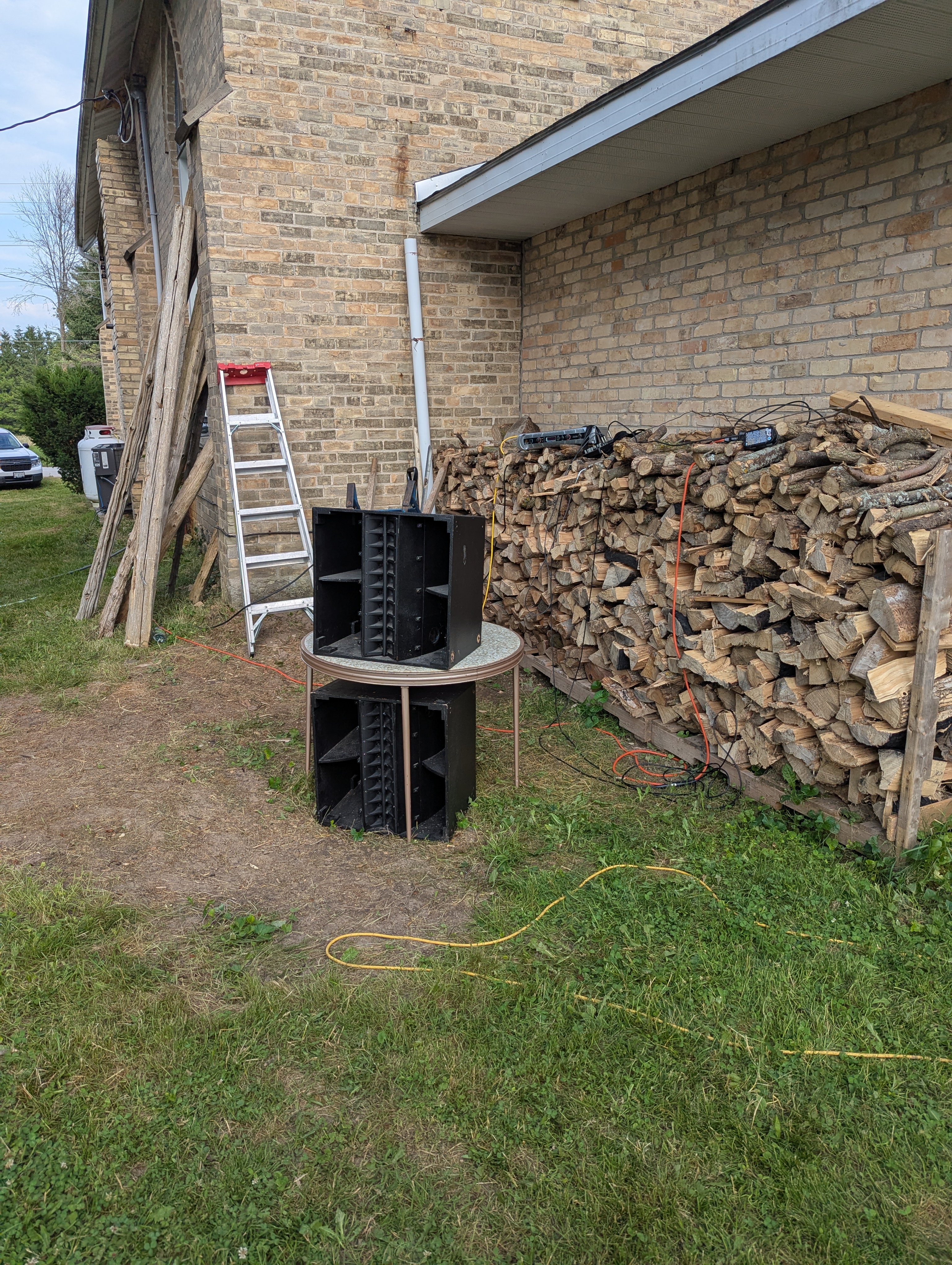 I was asked to bring my speakers, to a little party, to be used for back ground music and announcements, and I was lazy. This setup worked well, considering, as full range. I had a hi-pass of 80hz.