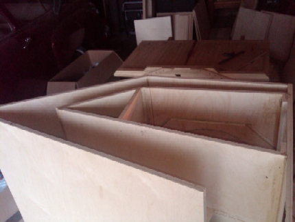 ' Started in on the Titan 48's today. I see builing quite a few of these in my future so I made an assembly jig for the inner baffles. The jig sits on top of the parts top hat style during assembly acting as a third hand holding the panels true during assembly. I have been finding it difficult to true the panels with just a guide board. Maybe I am missing something but this jig seems like it will speed up the production process. It was a tip from the cabinet shop where I have been buying my BB. I made two. Each a mirror image of the other so I can test fit the pieces before attaching them to the side for final construction. I rough cut my pieces and tested the jigs. So far they work like a charm. I will post updates in a couple of days after some time in construction.