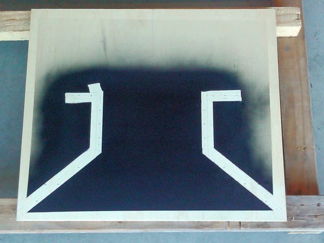 Time for another update. Two weekends ago I sprayed the inside Tops to match the bottoms and cut pieces ready for the week ahead. Masked off the joints on the Tops plus a bit more and gave it a spray with matte black. If it needs more, I'll do it at the end. Here's one as an example: