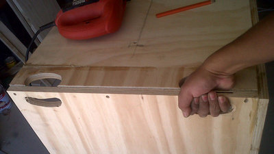 We needed to make the hand opening bigger so I grabbed and marked until the opening was big enough for the heftiest hand.