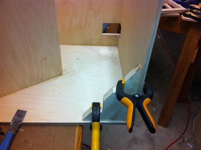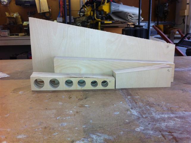 Glued up the driver spacer and the access cover cleat this morning. While giving it a little drying time, I took a little weight out of the big braces.