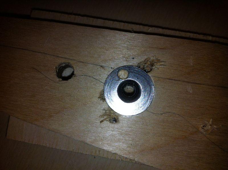 Then is was epoxy over the edge of the flange and the screw. This is also a good time to draw alignment lines for the interior braces - a lot easier to line 'em up later.