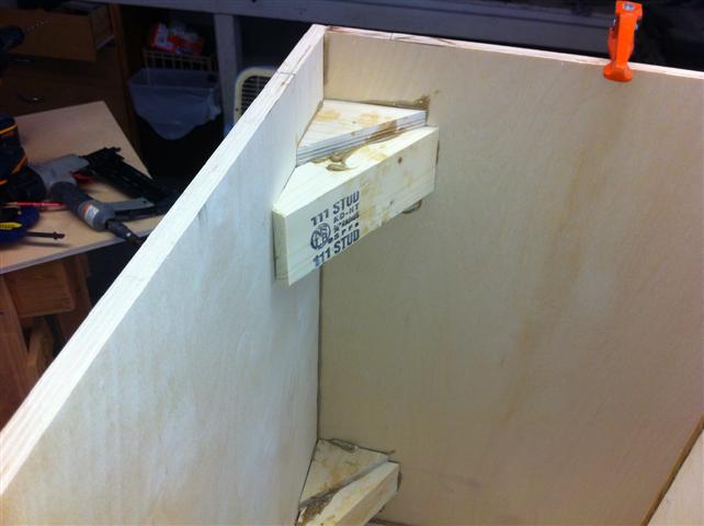 miked wrote: BTW: In that last pic, the bottom two panels, the ones that form a "V"; are they just PL'd together or are there brad nails toenailed in there too?
