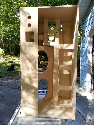 I used the same 2 3/4" holesaw trick to make the phase plug on mine. I like the way you did the driver holes. I used a jigsaw at a 45 degree angle, and the hole doesn't look nearly as nice.