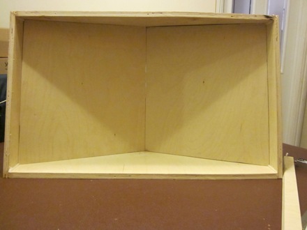 My next job was to cut the angled edges on the baffles. The angles didn't prove too much of a problem but unfortunately I ended up with a large gap between the baffles and the top of the cab.
