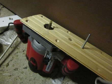 I've now routed my baffle holes (that must be a euphemism for something!). It was the first time I'd used a router but it was pretty straightforward. I used a simple jig I made out of thin scrap wood to guide the router. To be honest, as the drivers are front loaded on this cab, cutting with a jig saw would have been adequate as the holes aren't visible.