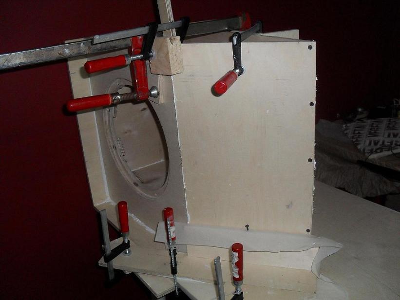 Thats where the problem is,a retailer assured you but he has probably never built a horn design subwoofer.Looking at the last pic you posted you are gonna have air leaks,i can clearly see area's where there is no glue or squeeze out.From what i understand of the product you used,its something like liquid nails.The problem within the cabs is not vibrations,braces take care of that but its the pressure of the design.