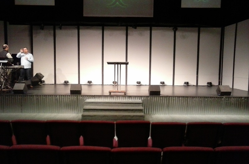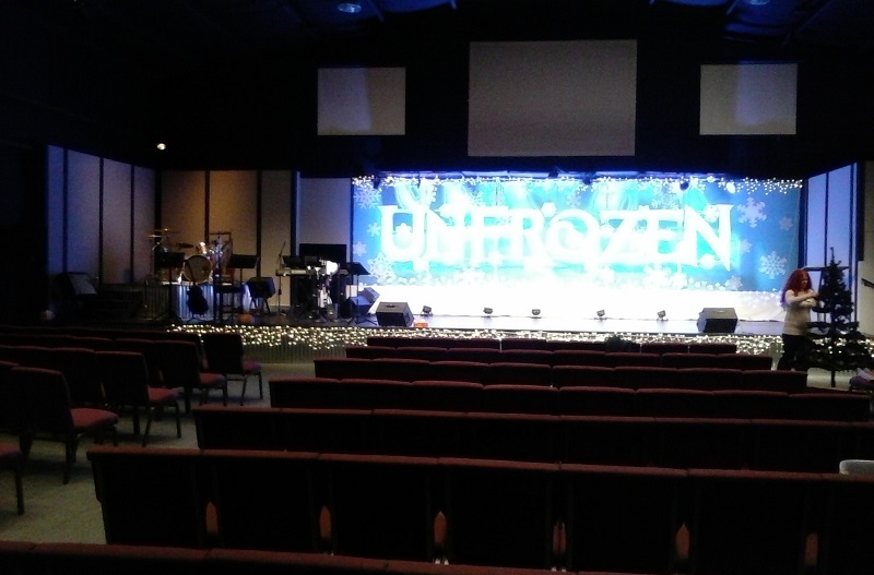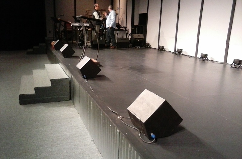 The pic shows the stage at my church from a few months back (during the 'UnFrozen' winter series)...you can see the wide area that was not being covered by the powered wedges.
