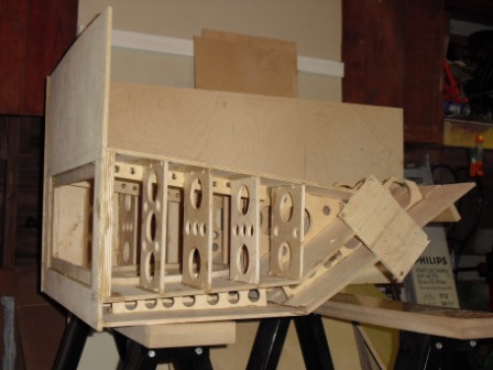To me the "new" way is so much better. It's easier to build an airtight chamber since the only opening is where the speaker goes. Much easier to mount the driver. I'll also say that I did my own new way before the plans were changed and I like it better than what Bill came up with. Basically I make two panel sevens with the inside panel cut for the speaker to go through. That way the front panel can be reinforced with the cut piece and it stretches across the whole cab which looks much nicer than the "access panel look". Here's a picture that may give an idea of how I do the front panel.The ONLY negative is that you need to build the cab up to a 1/2" deeper to give a "lip" for the extra panel.