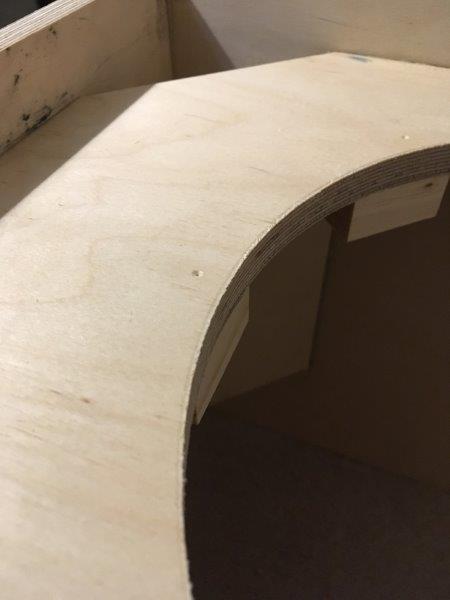 This morning (hey the thread is finally current - for the moment!) I removed the flat jigs and inspected the baffles and everything looked good. I will need to scrape ways excess PL from the baffles and cabinet but overall everything looked good.