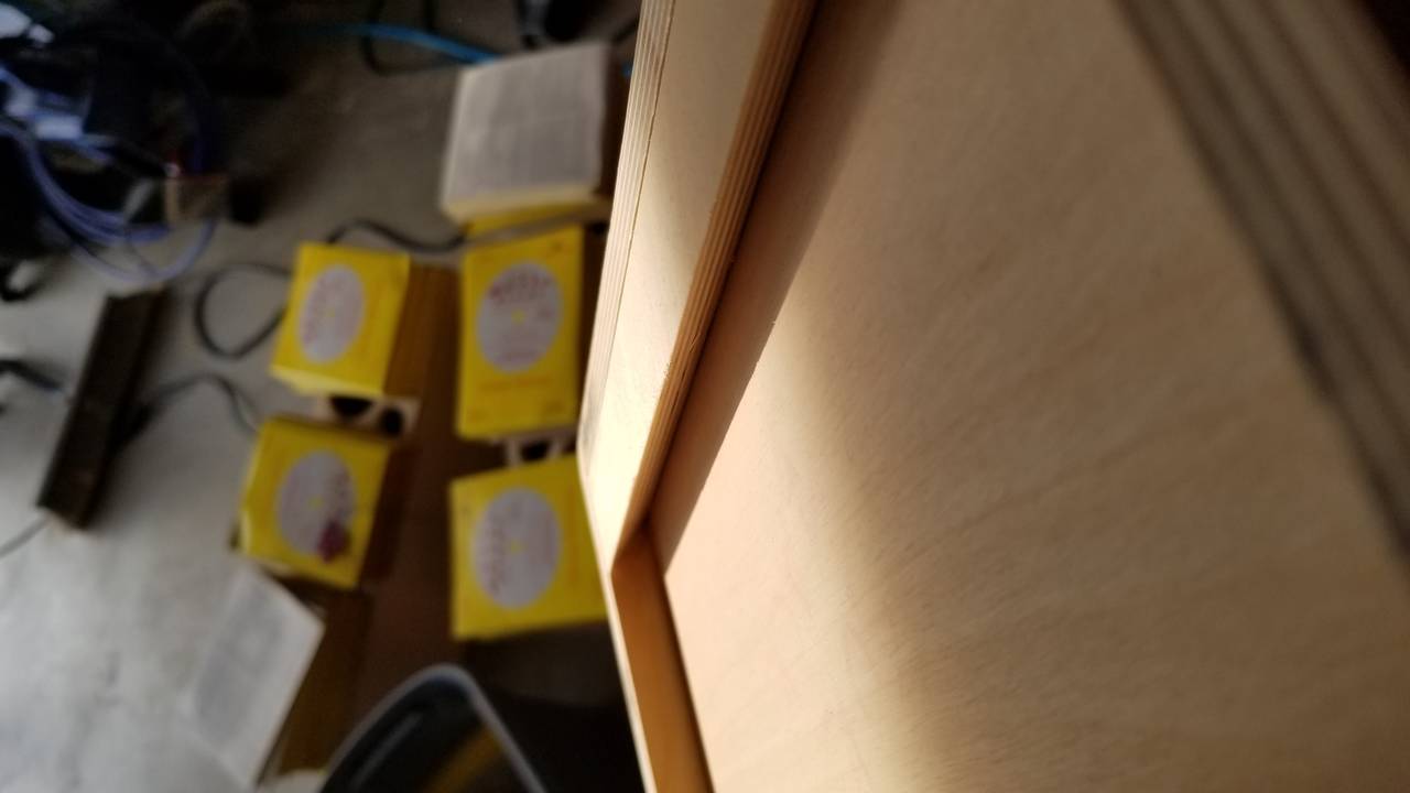 I went out to work on the SLAs some more and my glue monkey wanted to help prep the curve baffle. So I showed her how to use the random orbit sander and sent her to town. After that, I took the SLAs to the router table and rounded over all the edges. I did get some tear out from between the plys and off the top ply, but some sanding started to tame it down. Tomorrow will be some DIY putty and fill in the low spots and brad holes. Then it's time to sand and set those aside for priming and painting. Next was the glue up for the curve baffle. That was a challenge in and of itself. I ended up using brad nails to get them in groups of 2. After that I was able to just use clamps and glue. I found that if I set them on the ground smeared with glue, then lined them up top to bottom, I was able to then just clamp the holes together and it raised them up nice and flush. Wish I had done that first, woulda saved me the aggravation of sanding down the brads. I noticed that my top and bottom are narrower than the baffle. I will have to bend it a good 1/4 in to get the end segments to line up. This will create quite a sprung arch. Is this normal? Or should I cut another top and bottom?
