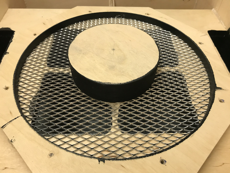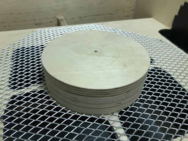 Glued three 5” discs together first, painted the sides and glued it to the baffle. I’ll use one screw in the center to be sure but I got a feeling it is not really necessary. Haven’t tried it but I think I can lift the cab by the phase plug. Speaking of which, never investigated the reason for a phase plug. It seems that a lot of (commercial) cabs don’t have one...