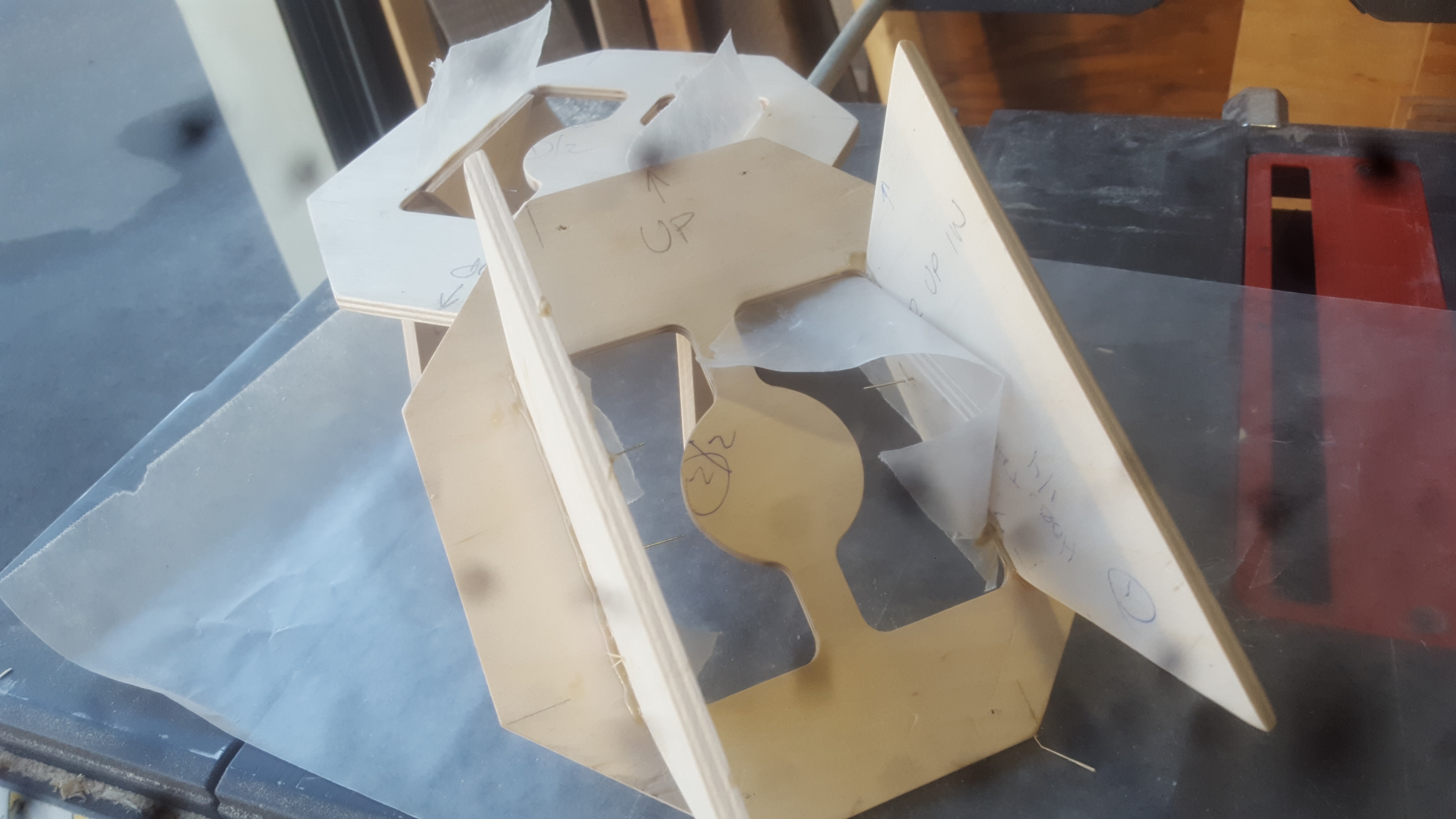 I wanted to at least get something glued together today, so I went ahead and got started by gluing and tacking the throat sides in place. So far, I've been using a 23g pin nailer and it seems to be holding okay. But I dropped it and it's now jammed. Magazine isn't aligned with the head anymore, so that put an end to the day. I'll have to look at it a little closer tomorrow. I'm sure I can realign it and get it going again.