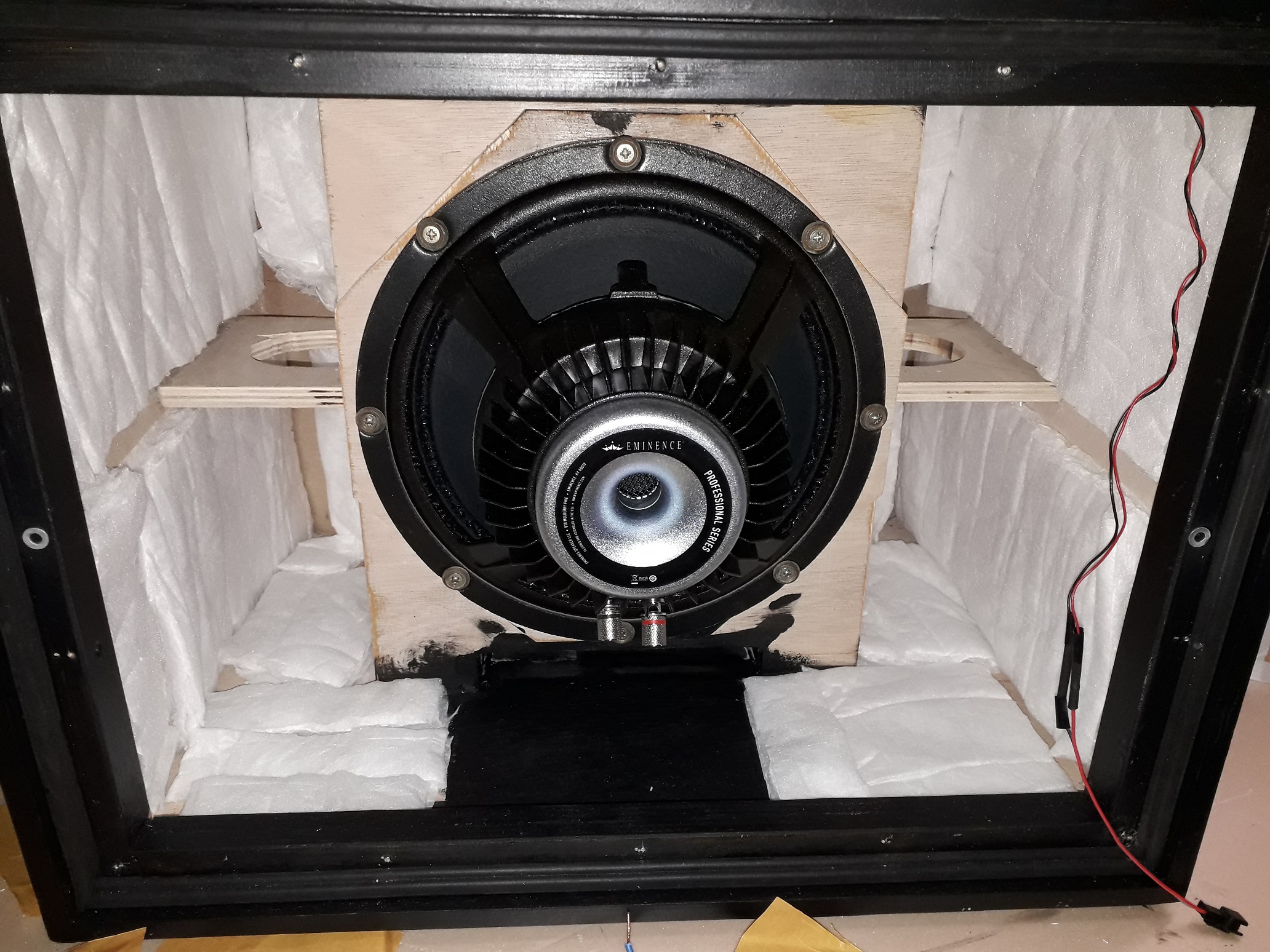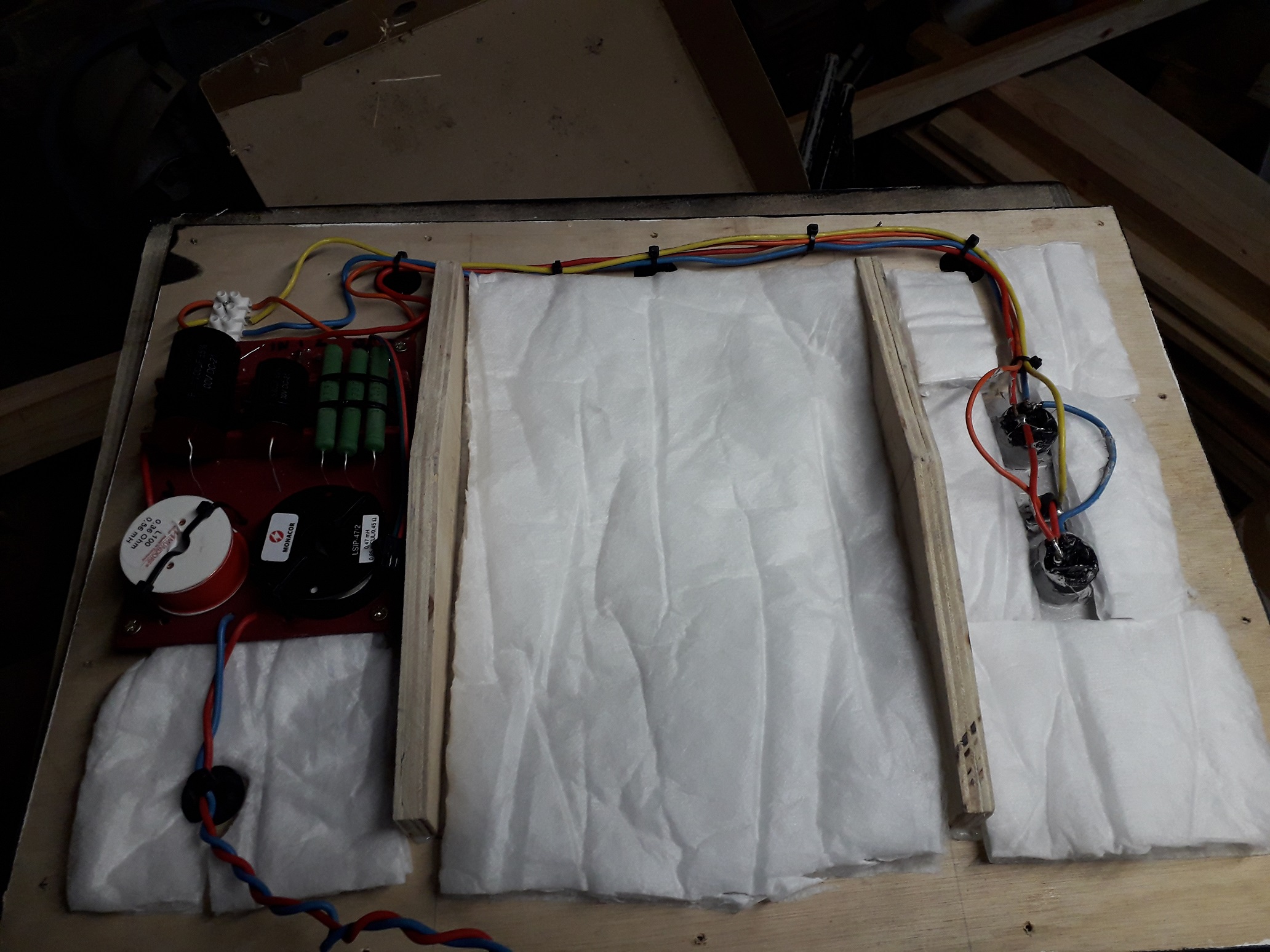 Picture of the main case with insulation (you can see the connector to connect the circuit to the tweeters)