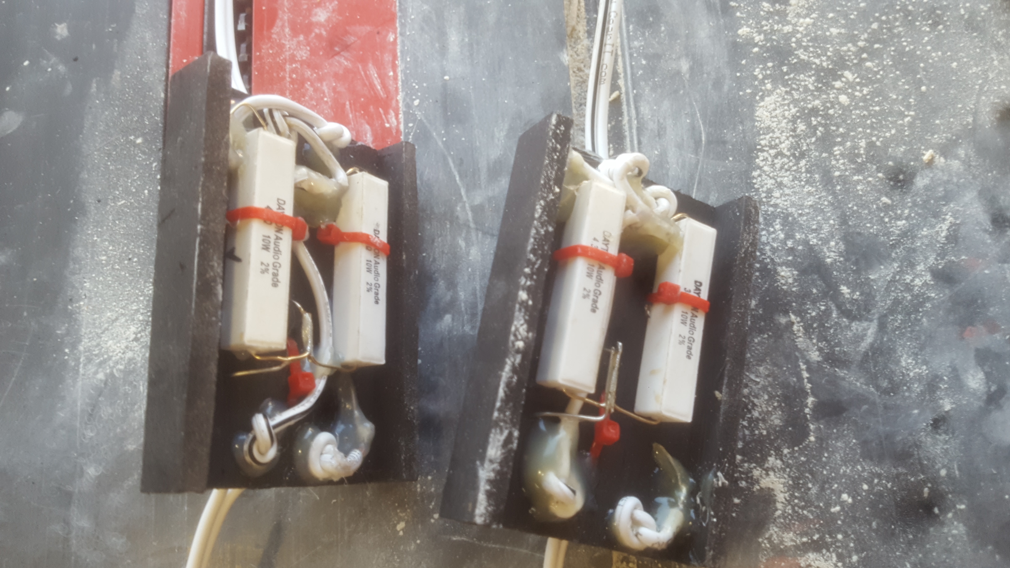 it doesn't have to be pretty. 1/4" plywood. Lay out the parts where they need to go. I then drill a little hole on each side of the component. Use zip ties through the holes to hold the pieces in place, use hot melt glue all around them to lock 'em in place and just solder the wires together. No need for an eyelet board. You can certainly use one if you want - but it's not necessary.Joeytiii wrote: ↑Sat May 01, 2021 9:01 am So I am building this cab for bass guitar only and will not be using any high drivers. I have been reading up on building the Low Pass filter and am perplexed at how best to create the joints. I have worked soldering on pc boards and when I look at the plans, it appears to show eyelets at each end of a wooden board. These were not part of the Leland's Deluxe kit so I wonder if I can just solder the speaker wire to each end?