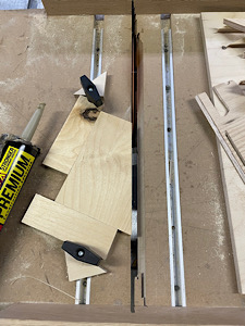 Don't try this at home kids! I made the large angle cut by flipping the piece up 90deg and then tilting the blade over 25 deg. I made the pieces larger than i needed and made this cut first as i had to make several passes. Then i came back, measured the distance to the other cut and made it since it can easily be made with the fence.