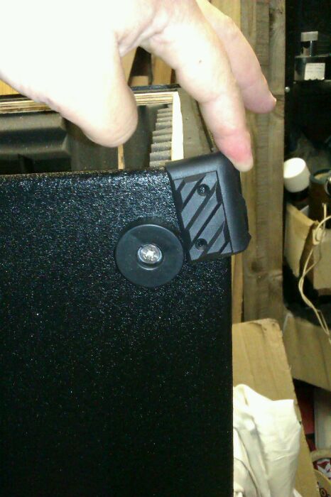 I have to confess I did not see this one coming. Gonna need smaller diameter rubber feet, something 20mm ideal, 23 max. if i file a bit of the corner protector away. I just loved the big shallow feet. The feet are 45mm centres away from sides, which looked right to me, rather than 2" which with a bit of fettling would have still worked. Suppose i could move the centres a midges and fill the old hole.