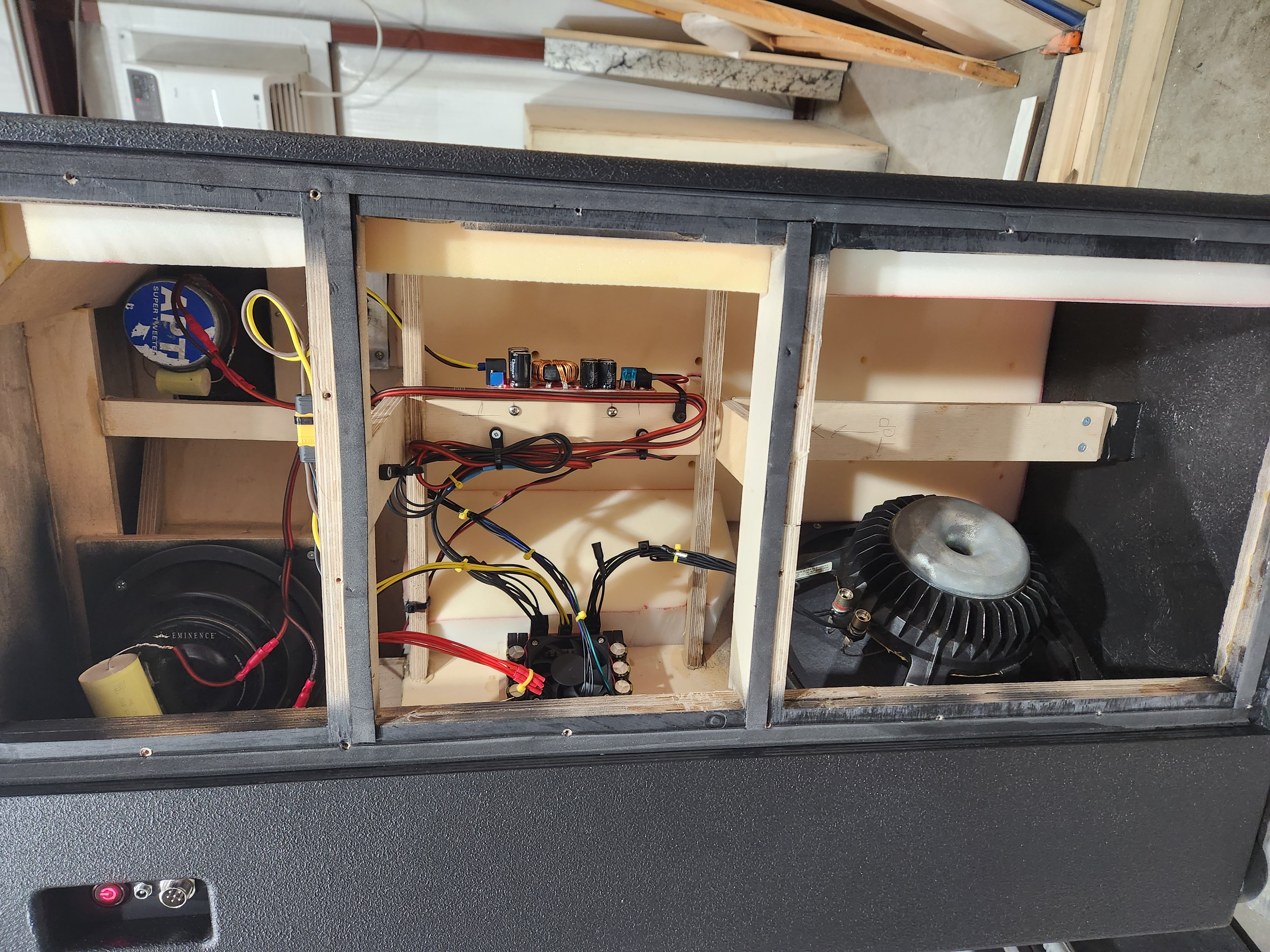 Wow that turned out pretty darn good. Only criticism I have is the bracket for the light and switch by the woofer. I know it's the easiest solution and you probably wont see it, but the exposed switch and wires seems.......incomplete. I can't think of an easier way with a small enclosure. Maybe 3d printing a little cover.