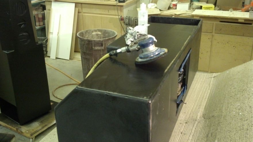 After spraying a second coat of sealer on, I got lunch and went by the paint store. Found out they could tint the sanding sealer I use. What a discovery! Got a gallon of black sealer and a gallon of the gloss black topcoat.