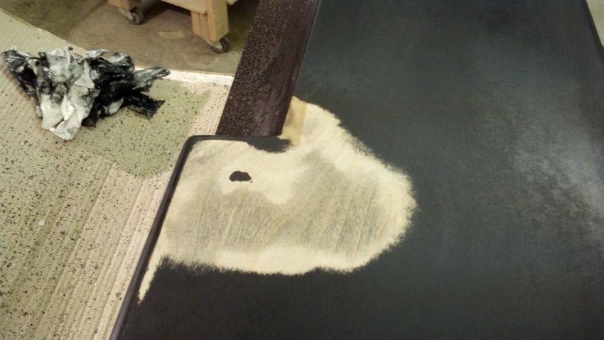 The air sander we have has a pretty stiff pad, so it sands pretty flat. I still used lots of paint thinner and wet sanded and regularly wiped my wet paper off with paper towels.