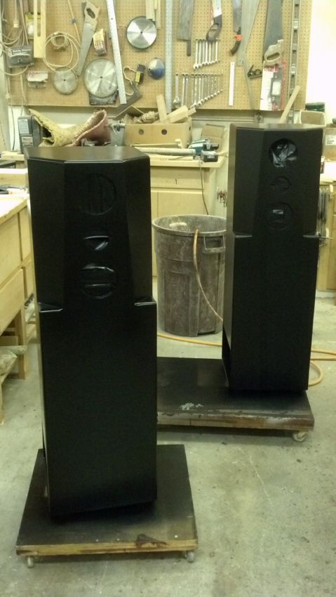 They look pretty good, but the old speakers were across the shop a bit and even all goofed up, that high gloss black that remained was so much more intense. This gets me hopeful for what the Davids are going to look like when the gloss black goes on!