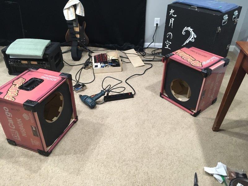 Today we had rehearsal after several weeks off. I had the speaker cabinets up on top of an old road case which placed them about 30" above the floor. Drummer commented that he could hear me "very well" and the lead guitarist asked me to turn down TWICE. Bass sound, to put it mildly, was simply excellent. First time in years where I did not strain to hear myself and could hear myself everywhere in our rehearsal space. I was only running at about half power. Always nice to cruise along like that knowing you have all that power in reserve if you need it and especially nice being able to cut through two very loud guitarists and a drummer.