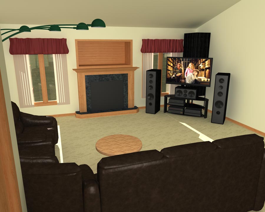 Simpler to build, less visual impact (it'll sit lower behind the TV), and it'll still be corner-loaded by the ceiling corner.