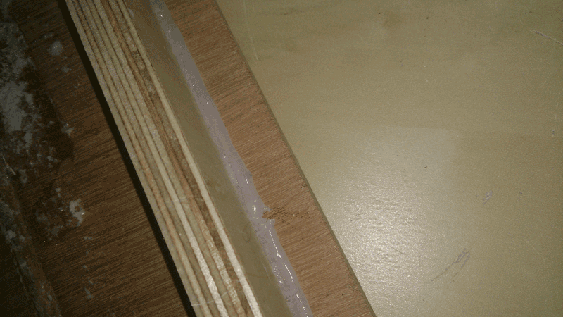 Initial test was very encouraging. Of course I can only take pics tonight after it dries, but I placed a long bead, placed the bit of wood on the board (see pic) pressed it down to squeeze a bit out, and then moved it about 2 mm offset to leave a bit between the wood and the squeeze out.