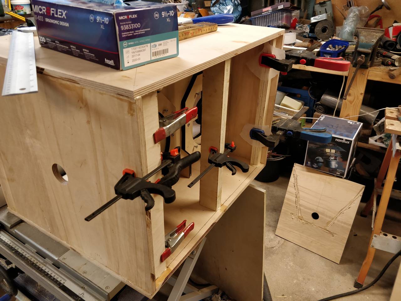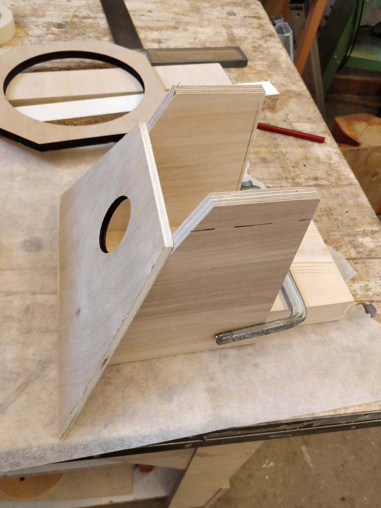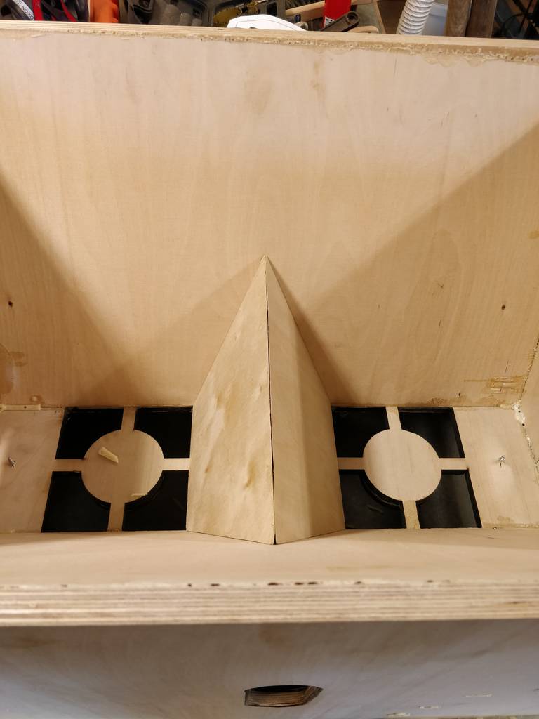 I began installing the back frame on cab #1. I've read many things about this part. And also I didn't enjoy it that much.. luckily it wasn't that hard, so it went super well. But cutting, trying to fit, trim, sand, whatever to make it fit nicely.. lots of work. Well, I didn't want to rush and make another mistake. I also went for the part I was worried the most about.. installing the horn throats.. I decided to use the ones I laser cut, even though I had other thoughts earlier. They just had to be sanded a bit, as they were a little to big for the cabs. Most likely because I was too scared to make them too small when I cut the angles.. Well I spent hours sanding all of them, but I was quite happy with the result. It began to look like a horn speaker. Overall I was quite happy with the day. I spent 12~ hours in the workshop and I managed to overcome the parts that I feared the most. I was a happy man when I went to bed.