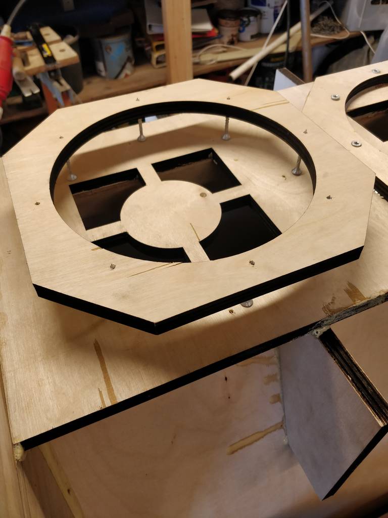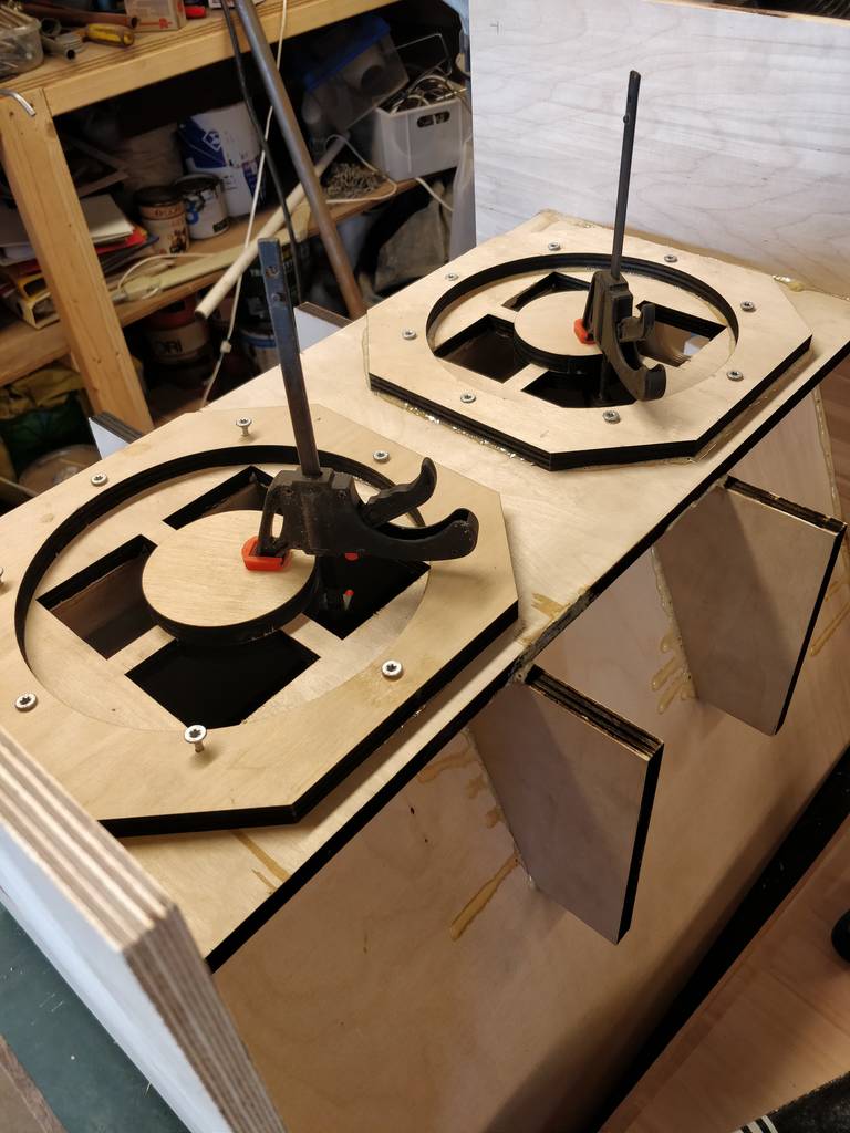 So I spent some hours and got the woofer spacers and phase plugs installed. I skipped the horn throats, even though the plan said to do it first - but I'm not happy with the angles and all, so I'll make some new ones. And I didn't have access to the laser cutter, so I decided to continue the build and wait with them. Hopefully it won't ruin my build.. #1 always follow the plans..