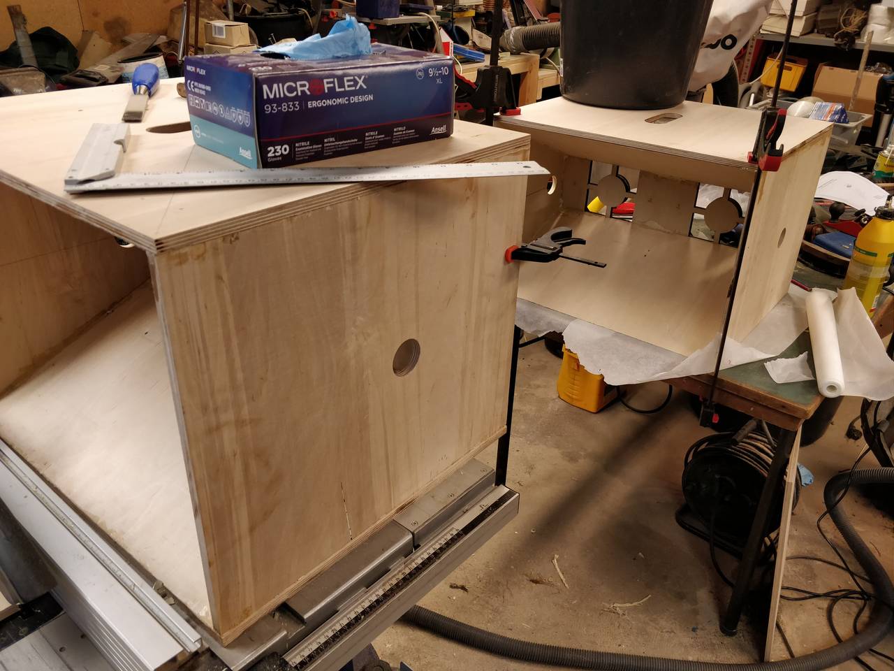 We made a jig for the saw, and it went super smoothly with all sides. Extremely satisfying to look at the layers and the straight cut!! So that's all I managed to do in the evening. I was hoping to install the sides as well, but I ran into a problem.. will continue the post after this one - need more pictures.