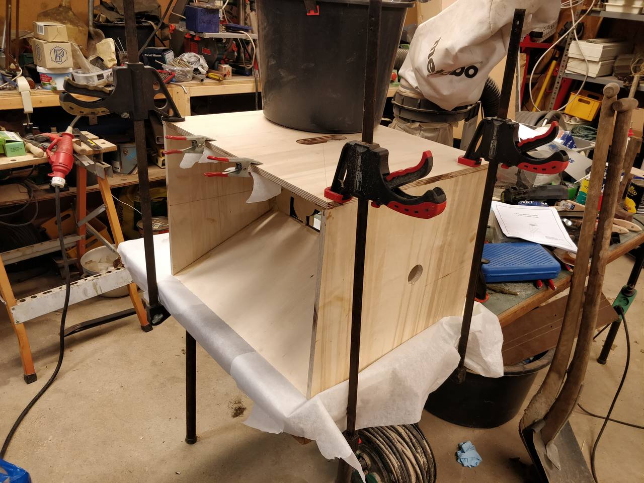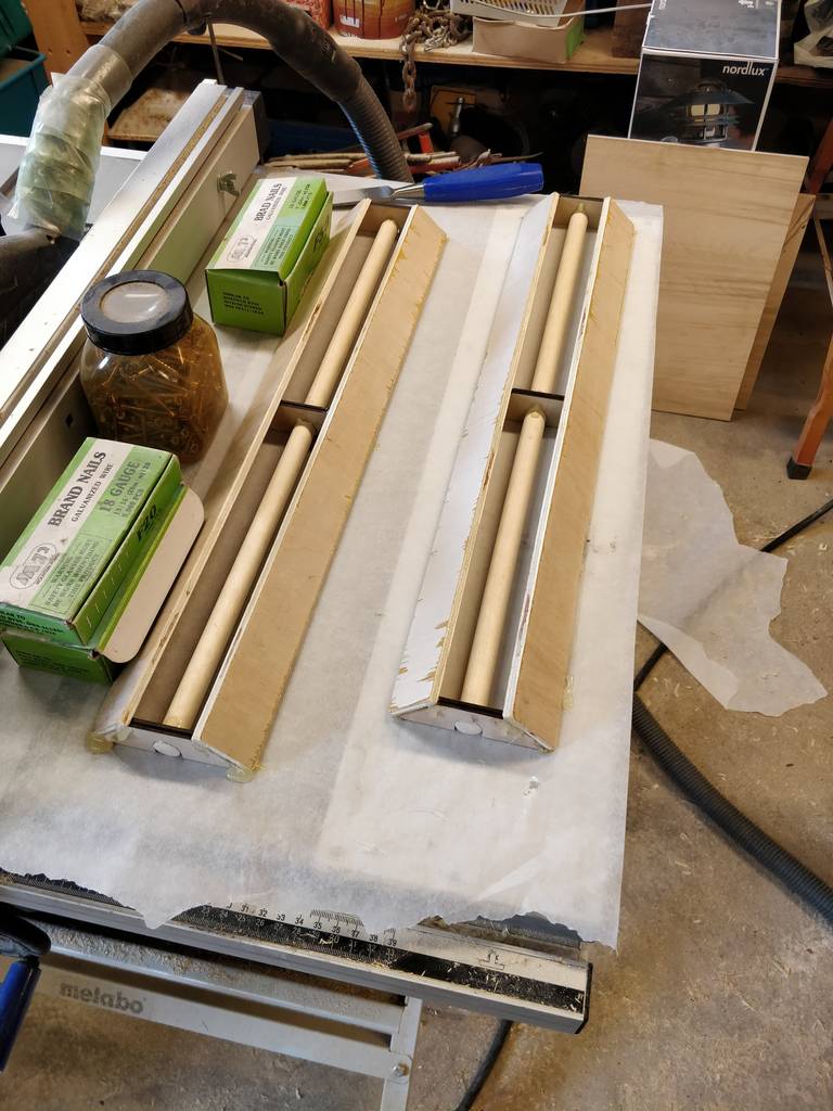 It was only 5 hours, and we had to wait for some tools, so we only managed to do one round of glue, as we had to move the cabinets by car when the workshop closed. Well, we got to work on all the other parts, so now it's just about assembly.