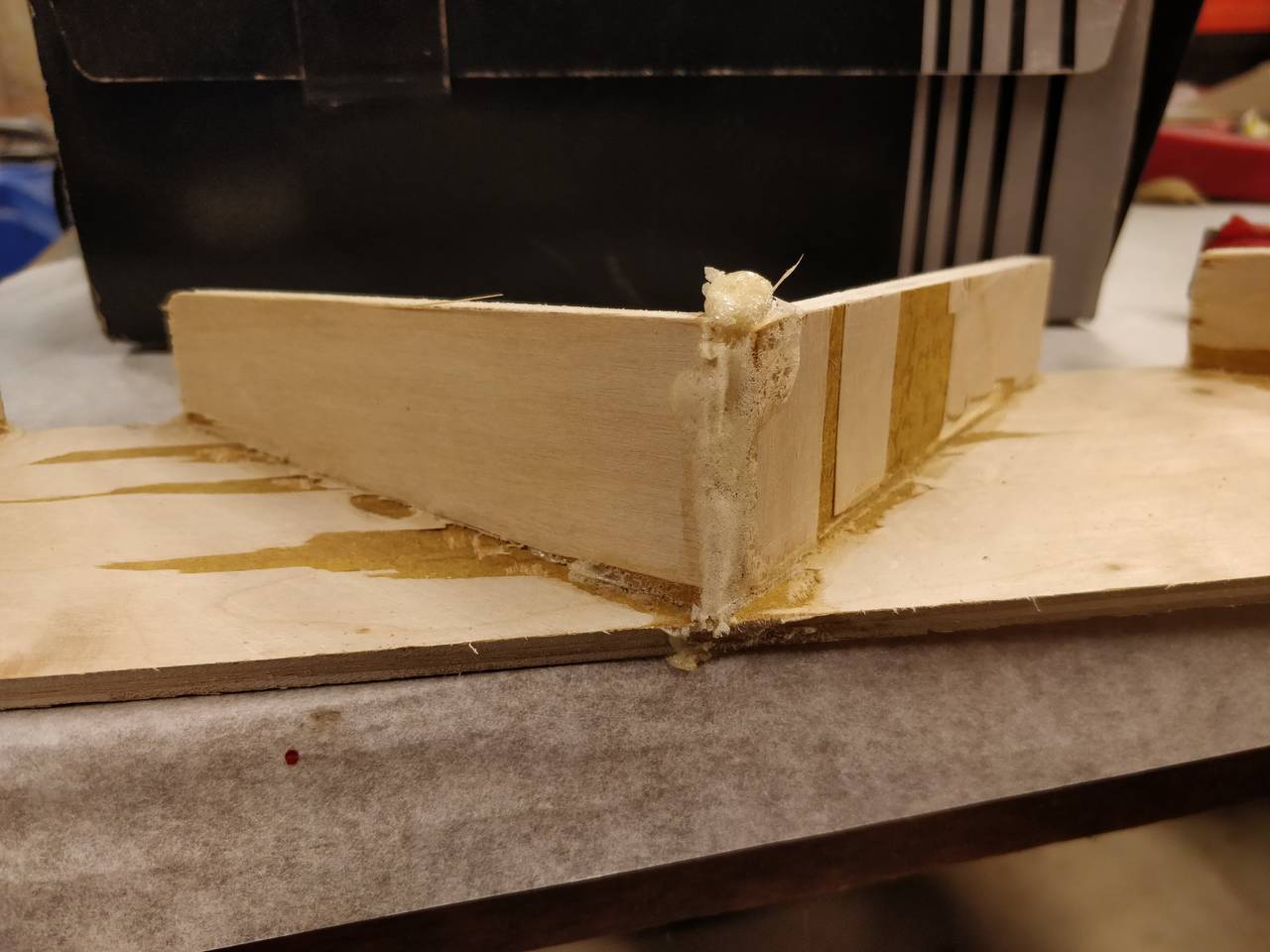 +1Bill Fitzmaurice wrote: ↑Sat Apr 06, 2019 9:00 am There's no need to remove adhesive squeeze out on the inside of the cabinet. The time to remove it with a sharp chisel is one to two hours after application, when the adhesive is done expanding but is not yet fully hardened.