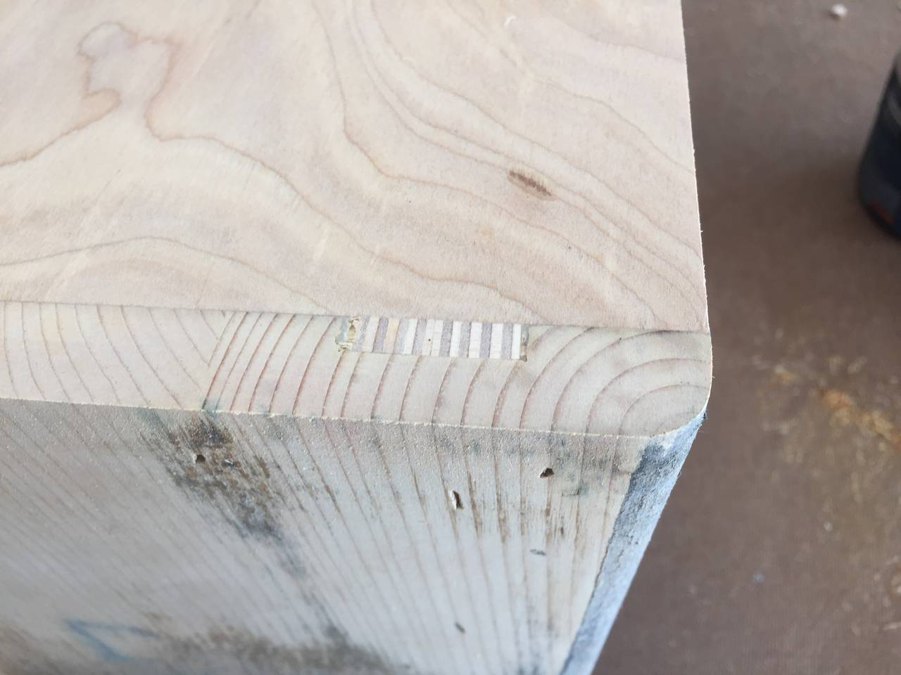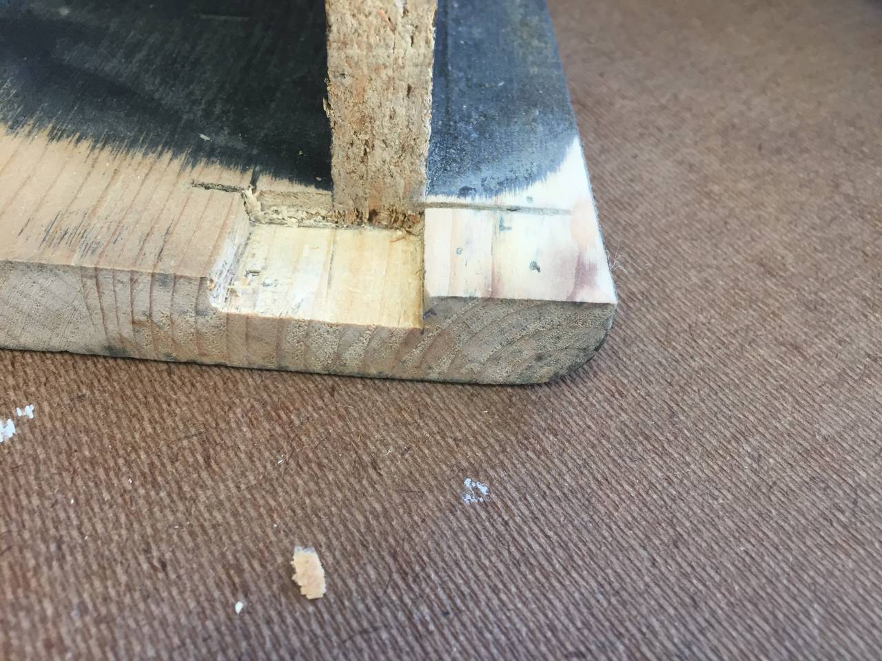 What a mess.... Cleaned up the gouges with a chisel.... Filled 'em with some scrap BB I had laying around.... Put on the new bottom, flush cut it, then routed the edges to a 1/2 roundover to match the rest of the cab...