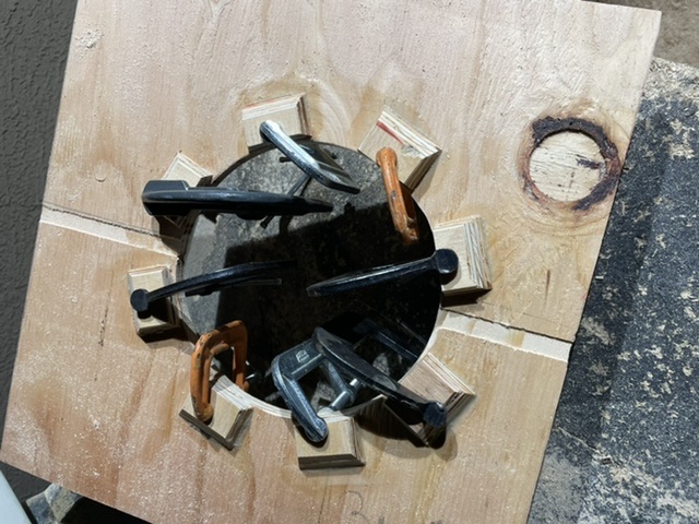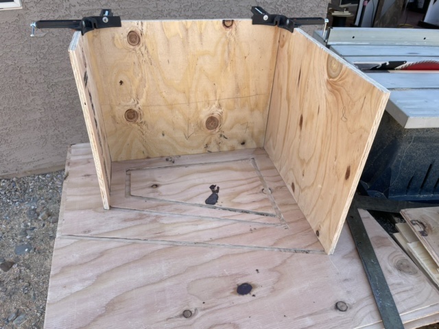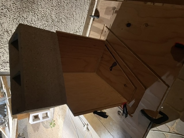 More progress. Using cheap 1/2” 5ply my side was bowed some so I clamped to to a straighter surface inspecting for true. Glued two panels on also cut and prepared the driver baffle.