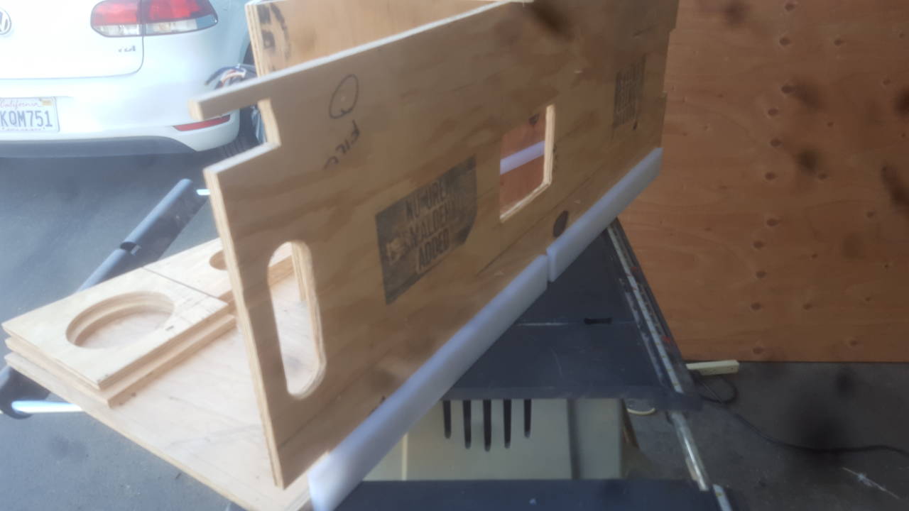 Hot tip! Cut up a HDPE cutting board to use as guides and stops. PL wont stick to it and it's easy to pull brads through once removed from their duty. Panel 8, 9, as well as 5/8 braces installed If you look at it from a certain angle, close one eye, and squint the other... it looks a little like a box now.