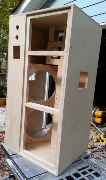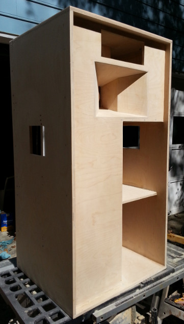 By the way, once the back flanges were in, that 80-100 Hz ring in the cabinet was gone, gone, gone. Hit it with a rubber hammer now and it just makes a whacking noise instead of that poom it made before. Very strong and acoustically dead box, very nice, and it will be just as nice after the fix.