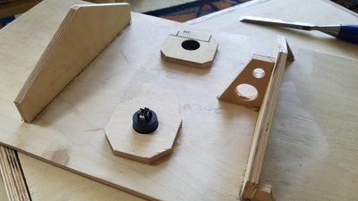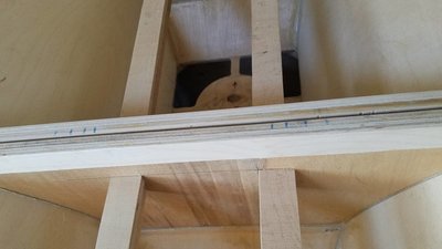 A little mod to the back braces that will support the x-overs. They are kind of heavy since I put hp and lp on one board and I was a little concerned about all that weight hanging off a thin plywood joint. These little scraps should keep everything nice and secure even if the cab gets dropped on its side.
