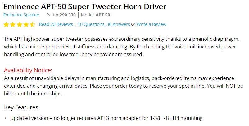 edit: The APT30 is a self contained unit for sure, the driver doesn't appear to separate from the horn easily in my research.