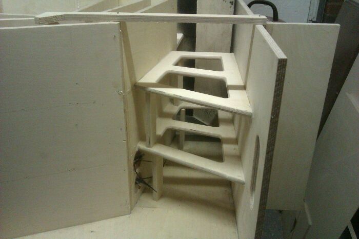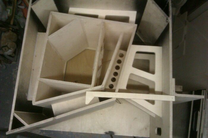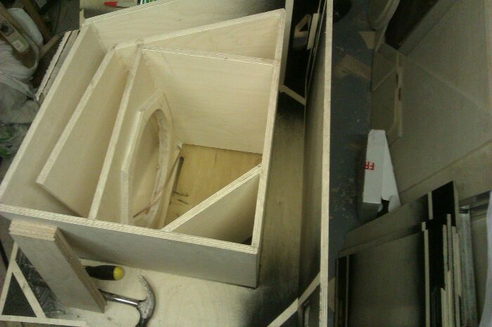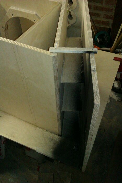 The progress rate is officially embarrassing now. Here is the remaining stand up panels and braces in the first of 2 subs. I've rounded over the cut outs and front and back edge on the main mouth braces.