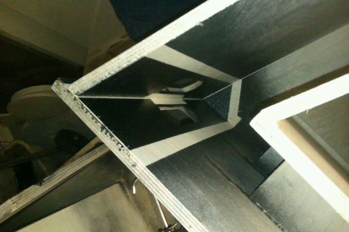It's not much, but I'm claiming it: cut Mitred reflector panels and chamber reducer panel, installed chamber reducer panel, ripped up 1 1/4" strip for framing out access hatch, and readied panel 8 for installation. Inside handle locations pre painted.