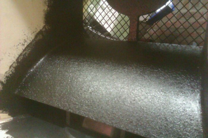 Rollered tuff cab, 2 coats plain foam roller, 1 coat textured. I can still slightly see the wood grain, through the textured top coat, with the naked eye.