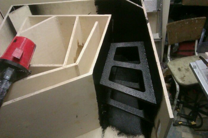 I have levelled off the ends of the upstanding pieces using a straight edge and small jack plane, ready for the final side to go on, on both cabs. The worst gap between a side panel and the end of the upstand is always in relation to how hard it is to bend the wood to where it needs to be. I've no more than a 1.5mm gap in the centre (acces panels and business) area of the total upstanding boards/construction - the 30" square side panel being fitted will fairly easily bend to meet the outside of upstand (top, bottom and back) sides of the sub. I'm slightly thinking of just using brads to hold the remaining side on (and PL obviously, to state the obvious), given the useful effort I've gone to in levelling things off, and it wasn't that hard - I'd put it at easier than the preparations for using screws to fix a last side.
