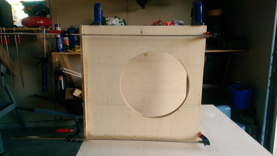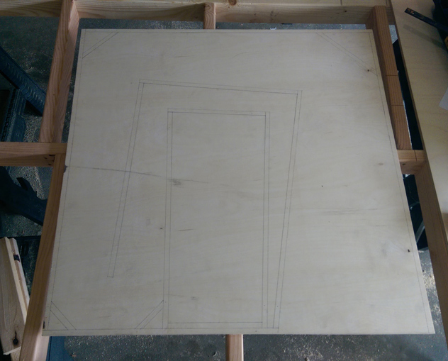 Here's panel 1 - really it's pretty square. I know I'll be fighting bowed wood the entire build. Right now I'm not too happy with the B/BB Baltic Birch I bought. I went through a bunch of sheets before settling on the 3 I did buy. If I build another I think I'll try the Arauco ACX.