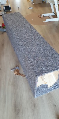 Laid down behind the couch. I'll put it on rubber feet, I think.