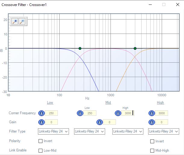 - Set the midrange crossover filters back to the recommended settings (I'd personally recommend you start with 24dB LR filters) and mute the midrange driver.