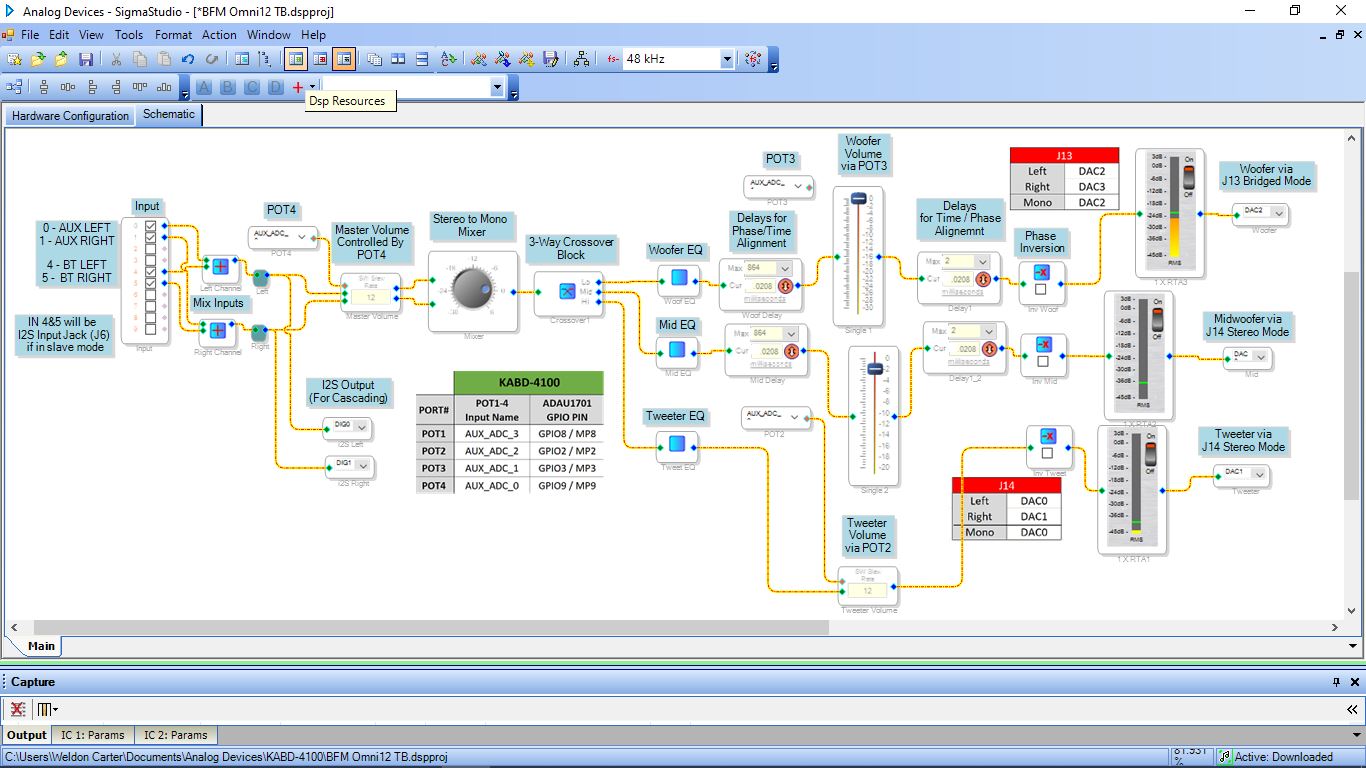 The layout will be easy to modify and honestly it's a work in progress after the pre-made config failed to have any output on the woofer at all...